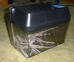 1999.3.26 | シュレッダーが大きいのに変わって、ずいぶん楽になった。音も小さいし早いしあまり苦にならない。が、ゴミの後始末は大きくなった分ちとめんどくさい。 |