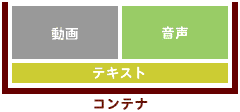 - 特定のコーデックを用いて作成された動画データと音声データのみを格納できるもの。