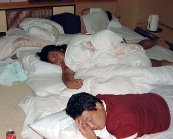 お疲れさまショット。一番奥で逆さまに寝ているのは酔いつぶれてしまった高桑選手。