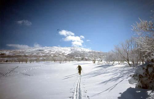 3連休、伊藤さんとスキーツアーに行って来ました。 3日間予報に反し、良い天気でした。 土曜日(2月16日):佐渡山 大橋~佐渡山(往復) 前日夜発、(黒姫)信濃町インターに向かう。朝3時着の為、早く起きれず。昼、 (戸隠)大橋に到着。駐車キャパは6~7台というところか。なんとか車を止める事が 出来た。大橋よりたらたらと林道を歩き、佐渡山を目指す。今回の目的は、高妻山な ので偵察も兼ねる。標高差700Mだが、もっと登りは楽に思えた。佐渡山の名の由来は、 山の上空から見た形が佐渡島に似ているから、だそうだ。 頂上から沢筋に、ダケカンバの疎林を滑る。雪質は最高だが、先週の暖かさで、底は 固く、板が弾かれる。3時間の山行だった。 日曜日(17日):黒姫山/小黒姫山(御巣鷹山) 大橋~黒姫山~小黒姫2回~大橋 渡辺友人鈴木氏も合流。9時出発。天候に不安があった為、雪崩等の不安の残る高妻 山は諦め、黒姫に向かう。標高差900M、外輪山に直登後、外輪山に沿って黒姫山に。 大変綺麗な景色である。黒姫頂上から七つ池に向かい滑り込む。(400M) 頂上直下から夏路が、池に向けてあり、そこが絶好の滑降ポイントだが、頂上から発 見出来ず。150Mくらい滑降してから発見。最高のパウダーポイントを、高速ターンで 駆け抜ける。池から振り返ると、やはり頂上直下に格好ポイントがあった。すこし残 念。 池より400Mハイクアップし、小黒姫へ。南東面に美味しい斜面が見えたので、池へも う一度滑り込み戻る。再度登り返し、今度は南西面だ。わずかな急な斜面を楽しむ。 その後外輪山にシールを付けずに斜に登り返し、一気に大橋まで気持ちいいツリース キーを楽しむ。4時前着。合計登行1700M 大変お勧めのコースです。 月曜日(18日):根子岳 峰の原ペンション~根子岳 前日、菅平にある小俣氏別宅に泊。 小俣、川崎カメラ氏と根子に行く。両氏から前日最高のコンディションとの情報。 10時発。登り、快調に飛ばし、取り付いている人をごぼう抜き。小俣氏お勧めのパウ ダースポットである沢に皆で入る。沢山の人が、山に入っているにもかかわらず、こ のラインはボトム迄ノートラック。ニセコ以上の雪質に声をあげる。根子始めてだが 侮れず。これで斜度がもっとあれば、、、。 野沢TM通信2002シーズン第8号~黒姫山~ 今晩は、ノブ@野沢です。 このところ、仕事が忙しく・・・うそ?(^_^;この一月ばかり休み無しの今日この頃 です。 野沢もすっかり春めいて道路の雪も消えまるで4月のようです。 (・・っていっても家の前には雪がありますが・・・・(^_^;) いかがお過ごしでしょうか? ・・・で遅くなりましたがツアー報告なんぞ・・・・ 黒姫山と小黒姫山~予報が外れ儲けた~~2月10日~ 渡辺君が伊藤さんと3連休で信越方面に来てくれると言うので久方ぶりに一緒にツ アー・・・・荒れると言う予報がみごとに外れ思わぬ儲けのツアーとなりまし た。。。。(^^) 寝坊したノブは、約束の大橋に遅れて到着・・・荒れると言う予報をいいことに朝か らビールを飲んであきれられるノブであった・・・(^_^; その場で今日のコースは、黒姫として小雪の降る中出発する。 新雪は、大橋で10センチほどベースはこのところの陽気でカリカリまるで3月のよ う・・・ いつものように林道をペケペケと今日は仲間もいるので離しながらだらだらと行くの も楽しい・・・(^^) 1500mを超えてもベースはカリカリなのでラッセルも20センチ程度で楽チン楽 チン・・・・(^^) なんてことなく稜線へあとは稜線を写真を撮りながら行くと黒姫山の頂上へ・・・ (^^) ピークで大休止お調子もんは、ビールとラーメンのいつものパターン・・・・(^_^; 頂上から七ッ池へ向かってレッツTM!! 渡辺君はかっとび滑り・・・さすが、伊藤さんもていねいなTMで降りてくる・・・ 池へはあっという間・・・浅いもののそれなりの新雪にみんな・・・(^^)(^ ^) 降りて池を横断し白い斜面が広がる小黒姫山(御巣鷹山)へ、樹林帯を登って行くと 程無く山頂へ、正面にさっき滑った黒姫の斜面が望めいい気分・・・・(^^) 休みも程ほどに再び池へ向かってTM・・!!あっという間に池で今度は隣の斜面と言 うわけで再び小黒姫へ登り返す。 今度は隣の斜面うを滑ってトラバース気味に1850の稜線へ登り返し、あとはCWニ コルの森?を奇声をあげながら、渡辺君は颯爽と伊藤さんは丁寧なTMで・・・ノブは インチキTMと調子に乗って樹木に向かってライダーキック・・・(x_x)☆\バキッ! を駆 使し車へと戻った。 行程 8:40大橋(-7℃)-10:50 1870m稜線(-9℃)-11:55黒姫山頂上(-10℃) 12:25=12:40七ッ池(-11℃)12:45-13:20小黒姫山頂上(-10℃)13:25=13:30 七ッ池13:40-14:10小黒姫山頂上14:35=-15:051870m稜線(-13℃)=15:35大橋(- 10℃)