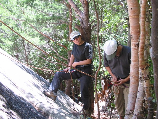初めて河又の岩場へ行ってきました。石灰岩を登った経験も少ないし、現実は厳し かったです。また力をつけて行きたいです。 サーフィンで肩を痛めたみたいで(情けない話なのですが)、思うように登れません でした。残念。数日間休養します。 1日程 12月23日 2行き先・コウモリ岩 河又の岩場 3メンバー 柏澄子、ヤスシ、タエコ、クマさん 4やってみたこと(成果とはいえないモノ) タミちゃんがハイ(5.8)からディスコバージョン(5.10b)に抜けるルート(5.9ぐ らい)・・・OS いきのいい奴(5.10a)・・・RPといえないほどきれいじゃない登り。後半はテン ションかけまくり。長くて面白いルートでした。 ギザギザハート(5.10c)・・・TRでトライしたが、数歩しか出ず。あっという間に やめた。 麦畑(5.10a)・・・リードでトライしたが、2本目までであきらめ。面白そうで す。またトライしたい。 柏澄子