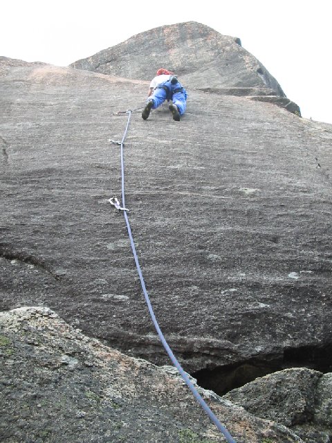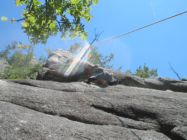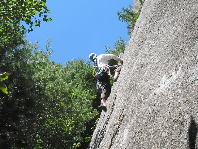 伊藤ちゅうです。 8/23,24土日、小川山でクライミングしました。 2日あったのに、ほとんど報告するほどのもんじゃないような・・・。 でも、ひさびさの晴れ! 混んだよ~~。 23日、フェニックスの右壁、5.9くらいの名無しルート。 けんじさん、すみちゃん、ちょめ&ちょめJr.、あっし、で代わる代わる。 5.8くらいの2本のルートのハンガーが、終了点も含めて全部外されてる。 高邁な哲学者かと思ったけど、ただの泥棒かもね。 だってスタットはぜんぶ残してるんだよ。アブナイよ。どうせなら、ぜんぶもってってくれりゃいいのにね。 24日、マガスラ、可愛い女5.8、高い窓10b、ウルトラセブンその他をTRでやはり代わる代わる。 けんじさん、ふみちゃん、Kさん、すみちゃん、ラッセル、あっし、ちょめ&Jr.、あっしのともだち大勢。 ちゅう