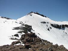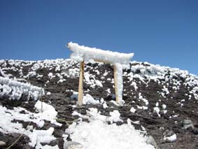 arc:報告 富士山スキー メンバー:小俣師、川崎カメ、イトウ 5月3日 天気がよいので誘われるまま富士の宮口にあがる。 8時15分に歩き始める。雲海状態で5合目よりうえは上天気。3000メートルで腰痛 の小俣師が下り、 3300で川崎カメが下る。1300頂上着。数人の登山者と山スキーヤーがいた。1330に滑 りはじめる。 頂上下100メートルほどは雪がなかった。3つの雪渓をのりつぎ、駐車場の上まで 滑り込む。1430着。 ざらめのきれいなバーンでした。今年は雪が少ないのかもしれません。 吉田大沢もぎりぎりで繋がっているようでした。 ito