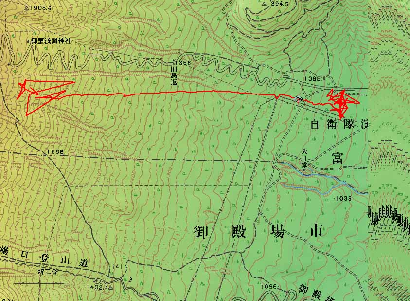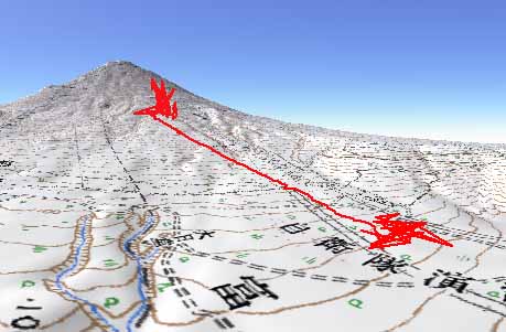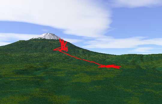 Flyer:F.Ito Para:FlightDesign-Stream No.:253-254th flight, Date:031102 Place:Mt.Fuji Subasiri. Alti:2000m-1000m Time:15m Total:48h.55 m Attn:First flight on Mt.FUji Thanks to SUNpara.