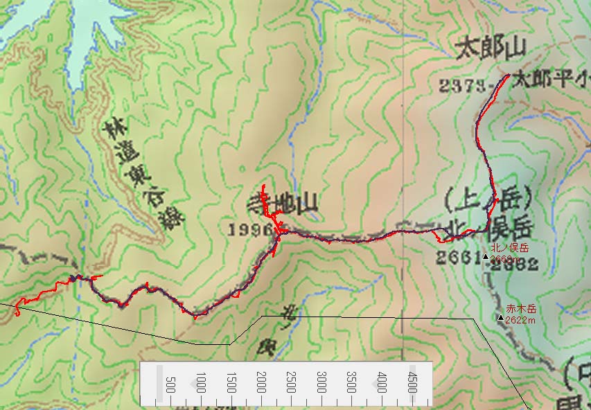 2004 5.1~5.5 太郎平スキーツアー member matukura omata kawasaki 5月1日 8時45分、埼玉の自宅を出発。10時10分頃に豊島区の小俣氏宅到着。荷物を積み込み、川崎カメラマン宅へ向かう。 GW中とはいえ、都内もけっこう混雑している。11時30 分頃、川崎さんの車に乗り換え世田谷を出発。 ラジオによる と、中央高速は渋滞。小俣氏の誘導で裏道をとり八王子ICへと向かう。途中、リンガーハットで昼食を取り、14時過ぎ に高速へ乗る。すでに、中央道の渋滞もほぼ解消しており、16時半頃松本に到着。ガソリン補給、行動食など仕入れて 、飛越トンネル登山口へ向かう。 松本からはかなりの距離があり、安房トンネル、平湯温泉、奥飛騨温泉郷を経て、1 9時45分に飛越トンネル手前にビバークポイントを見つけて天幕。すでに、数十台の車が林道脇に駐車中。夕飯はコンビ ニ弁当とカップ麺。 5月2日 4時半過ぎに起床。テントを出ると、雲一つない晴天。おにぎりと豚汁で朝食を済ませ、5時半過ぎにテント撤収。6時 前に林道を飛越トンネルへ向け歩き出す。林道にはすでに雪がないが、先で小規模な崖崩れが一ヶ所。これにより、車が 飛越トンネルまで進めないことが判明。 6時15分 飛越トンネルの左側から雪のない夏道を登り出す。少し先で先行者 が沢筋を登っている。それにつられて登るが、間違いに気づき引き返す。ちょっとした時間ロスがあったが、6時40分 頃、夏道へと戻り登っていく。 7時前に小ピークに立つ。一息入れて、さらに夏道をたどる。1時間ほどで夏道にも 雪が出てきて、シール登行を開始。寺地山へと登っていくと、しばらくで樹間越しに北ノ俣岳が見えてくる。今年はか なり積雪が少ないようで、稜線が真っ白ではない。山頂直下はシール登行では行けないような雰囲気。 9時半 寺地 山の頂上部を行く。先行者のトレースにしたがい、右斜面を巻くように進む。ここから寺地山と北ノ俣岳の鞍部へと滑 り込む。 11時15分 樹林の切れた鞍部から 長いシール登行を再開する。斜面はゆるやかな一枚バーンで帰りの大滑降が気持ちよさそうだ。だが、登り始めるとかな りの距離でなかなか頂上が近づいてこない。登るにつれ、息も上がってくる。中腹を過ぎる頃から左手奥の薬師岳山頂部 の様子が見えてくる。稜線はすっかり茶色の斜面が出ており雪がない。滑るならやや急な谷沿いとなりそうだ。 途中、 2回休憩をとり、いよいよ北ノ俣岳の稜線も近い。山頂直下はだいぶハイマツが出ている。滑ってくるスキーヤーに聞く と、尾根の右側から回り込むと、何とか雪を拾っていけるという。 14時過ぎ、北ノ俣岳の稜線に出る。眼前には真っ白 なバーンが広がり、テレマーカーやボーダーが左俣の源頭へと気持ちよさそうに滑り込んでいる。眼前には黒部五郎岳、 さらに奥には鹿島槍から槍ヶ岳の大パノラマが展開。一本、滑ろうかとの声もあったが、けっこう疲れていた。明日、目一 杯楽しもうということで、太郎平小屋へと向かう。 北ノ俣岳滑降はゆるやかな斜面で気持ちよくテレマークターンが決め られる。太郎山との鞍部からはシールなしでも登れる小さな登り返し。太郎山から一気に滑り込み、15時に太郎平小屋に到 着。まずはビールで乾杯。人心地ついて、個室へチェックイン。 5月3日 朝から風雨激しく、太郎平小屋にて停滞。やることもなく、停滞に備えて持ってきた宮部みゆきの「蒲生邸事件」を読んで 過ごす。 予備校受験で都内の古いホテルに泊まった少年が、ホテル火災で逃げまどっている際、タイムトラベラーに連れ られ二・二六事件当時に連れられていくというお話。 5月4日 今日も朝から激しい雨。午前中は小屋の計らいで、宿泊者が食堂に集められ、小屋番の話などを聞く。ガイドの杉田さん、 カメラマンの川崎さん、ベテラン・テレマーカーの小俣さんもちょっとしたお話を披露。 5月5日 5時起床。曇っているが雨は上がっている。下山の準備を済ませる。6時に朝食をとり、6時45分に、太郎平小屋を出発 。天気は快方に向かっているというが、雲は重くたれ込めており、北ノ俣岳山頂部はガスの中。マイペースでシール登行 をしていく。ガスの中へ入ると、周囲の地形が分かりづらい。それでも、小俣さんの先行で7時50分、北ノ俣岳山頂下の 下山口に到着。しかし、来るときには通れたハイマツ帯が、2ヶ所でまるっきり雪が切れており板を担いで通過。入り組 んだハイマツに何度も足を取られ、50mほどの距離も抜けるのがたいへん。 8時15分、ハイマツを抜け、いよいよ滑 降となる。ただガスのため、今ひとつ地形が分からない。滑っていくと、徐々に谷筋が近づいてくる。GPSで確認し、 右へとトラバースし、本来のルートへと戻る。 8時45分、寺地山との鞍部に降りる。再びシール登行。 10時半過ぎ に寺地山の山頂域に立つ。トレースを見つけ、勢い込み、滑り降りるが、途中から急斜面になり、トレースもなくなる。 道を誤ったことに気づく。30分の登り返し、GPSで確認後、再びトレ