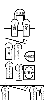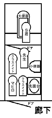 先生とS君の交渉が繰り広げられているが、我々はトイレの外に出されてしまった為に、その声を聞き取る事が出来ない。