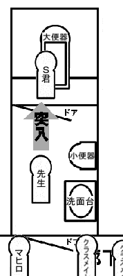 先生が大便個室に突入する。