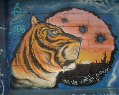 この作品の横に蜂の書かれたものも あります。同じ方の作品でしょうね。 トラと同じ色、タッチでいけますしネ。 |