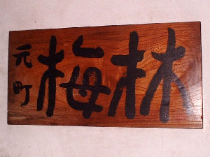 ) 佐島や長井の港から、直接買い付けた新鮮な魚介類と旬の食材を巧みにアレンジした料理がいただけます。 映画監督 黒沢明もよく訪れていたそうで、左の看板は、梅林が黒沢監督にお願いして書いてもらった物だそうです。 |