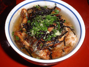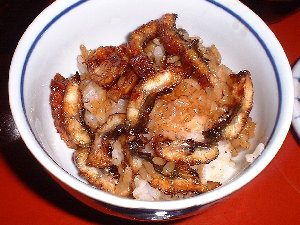 うな茶漬けにして食べます。 (出汁汁は、鰹だしでした。) |