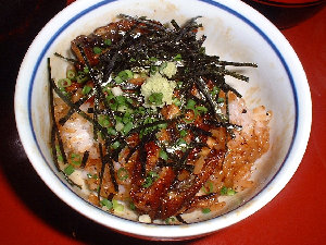 鰻の蒲焼きとご飯をまぜ、食べ方を変えて三膳を楽しむ料理です。 |