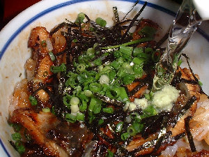 二膳目 薬味(のり、あさつき、わさび)を入れてまぜて、食べます。 |