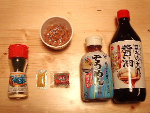 | 折角の健康食納豆に付いているのは、化学調味料入りのタレ。そこで提案!こんなタレは、捨ててしまいましょう! |