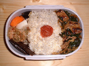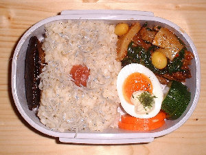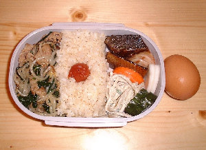| 食堂の営業していない土曜日は、まともな物食べようとすると、崎陽軒の幕の内弁当くらいしかなく、休日出勤が続くと直ぐに飽きてしまいます。その夜、自宅でご飯、といいつつ殆ど酒(・^^;)・・・。の時はいいのですが、飲むお約束なんかしてますと、ちゃんとした物を食べておきたいという気持ちが込み上げてきてしまいます。 そんな土曜日に、気まぐれで、お弁当作っちゃいました。(・^^)v 年に何回も作ることないですけどね。と、言いながら最近、結構作っちゃってますね。(・^^;) |