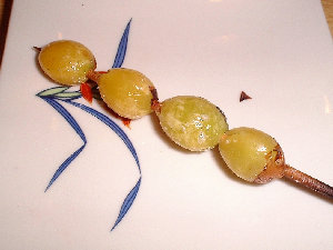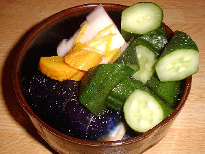 ここで、焼き鳥のお供の定石、お新香の登場です。「里葉亭」さんの糠床は、なんと!70年物だそうです。 ちなみに、我が家は、10ヶ月物 |