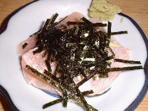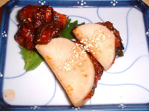 鶏ハツ、おろし生姜でいただきます。 |