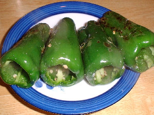 焼きピーマン、中には、熱々の肉汁が。 |