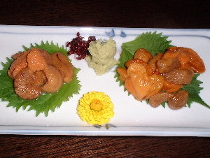 と はこウニ(箱もののウニ?) 帰らぬイカの皮とゲソの代わりにと、 ごちそうして頂いちゃいました。 ばふんウニは、ほんと深いお味 |