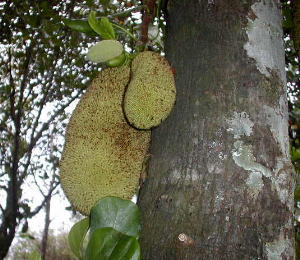 栗の木くらいにはなるでしょうか、高い木の幹にニョキっと実をつけるナンカ。