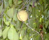 n pohon berbatang besar, bercabang agak rendah, buahnya cokelat