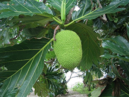 n 1 pohon buah sptkeluih yang buahnya tidak berbiji, Artocarpus communis;