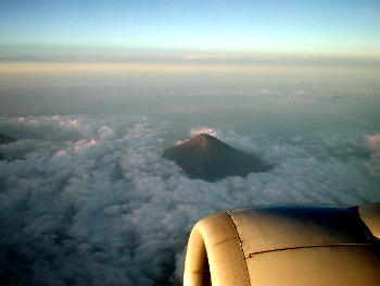 ジャカルタ〜ジョグジャカルタ間を飛行中に撮影しました。実は、この山とほぼ、