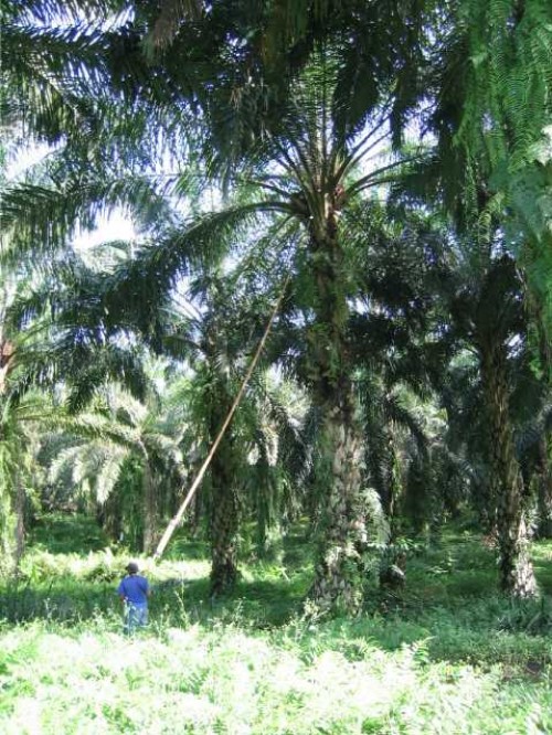 この地域一帯は油ヤシのプランテーション地帯で、あたり一面に油ヤシ園が広がっています。
