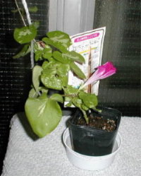 「巨大輪朝顔 くれない」の方は、背丈は伸びない(20cm