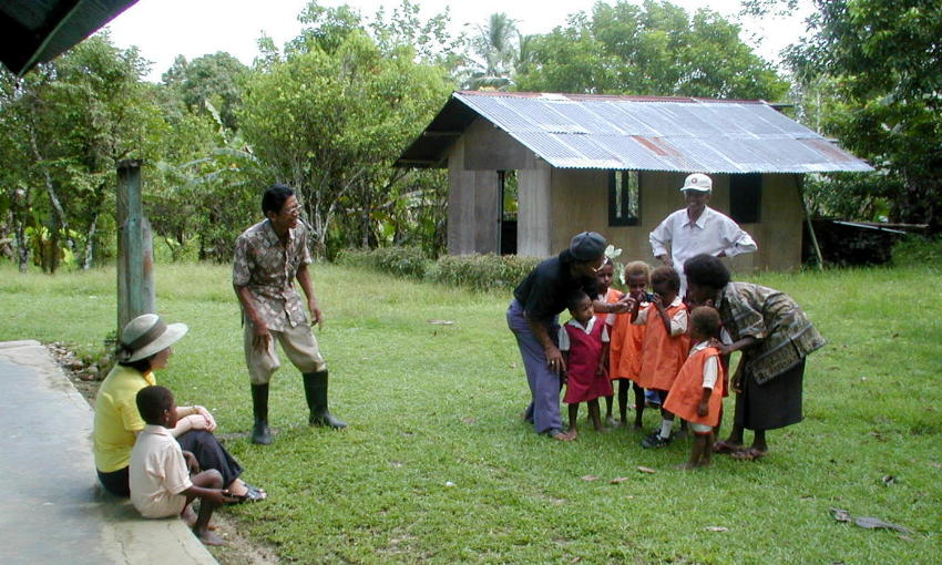 パプアの先住民です。どういうわけか男の子たちは上半身裸のままというのが多かったで