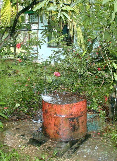 生活用水は雨水です。共同の井戸もあるようですが、ドラム缶などに雨水を貯めて、調理、洗濯、