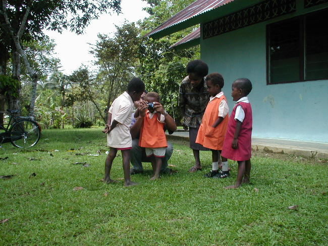 村の幼稚園を訪問した時、3歳の園児が私にカメラを向けて撮影しようとしている