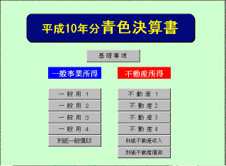 「EXCEL確定申告H10」は平成10年分の所得税の計算を行い、「一般用の確定申告書(白色申告用、青色申告用)」を作成するEXCEL97のテンプレートです。