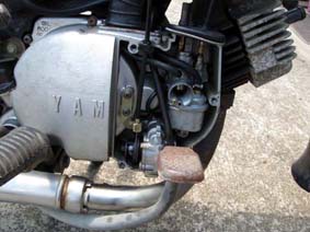 ロータリーディスクバルブエンジンなのでクランクケースと同じ位置にキャブがあります。