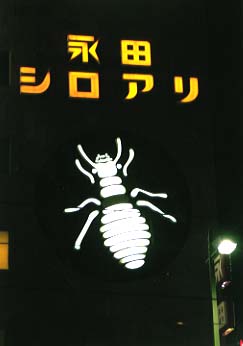 ![]() 最も好きな看板の一つ鹿児島市のアーケード近くにある看板、しろあり部分で約5〜6メートルくらいありそう、昼間は普通の看板なのだが今回はじめて夜点灯することに気がついた。因に一階のシャッターには『殺し屋参上!』と大書きされていた。 |