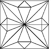 カニ、カエルの基本形が4集まった形、 古典折り紙の改造です。 カエルの基本形が4集まっています。