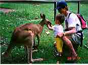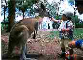 またここにはいろんなオーストラリアの動物がいる。特にカンガルーとエミューが放し飼にされていてカンガルーに餌づけが自由にできる。わが家も1歳の坊主がおお喜びで餌を与えていた。