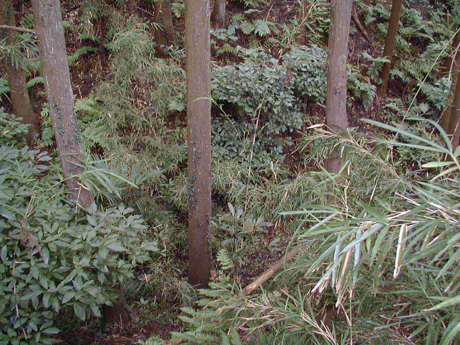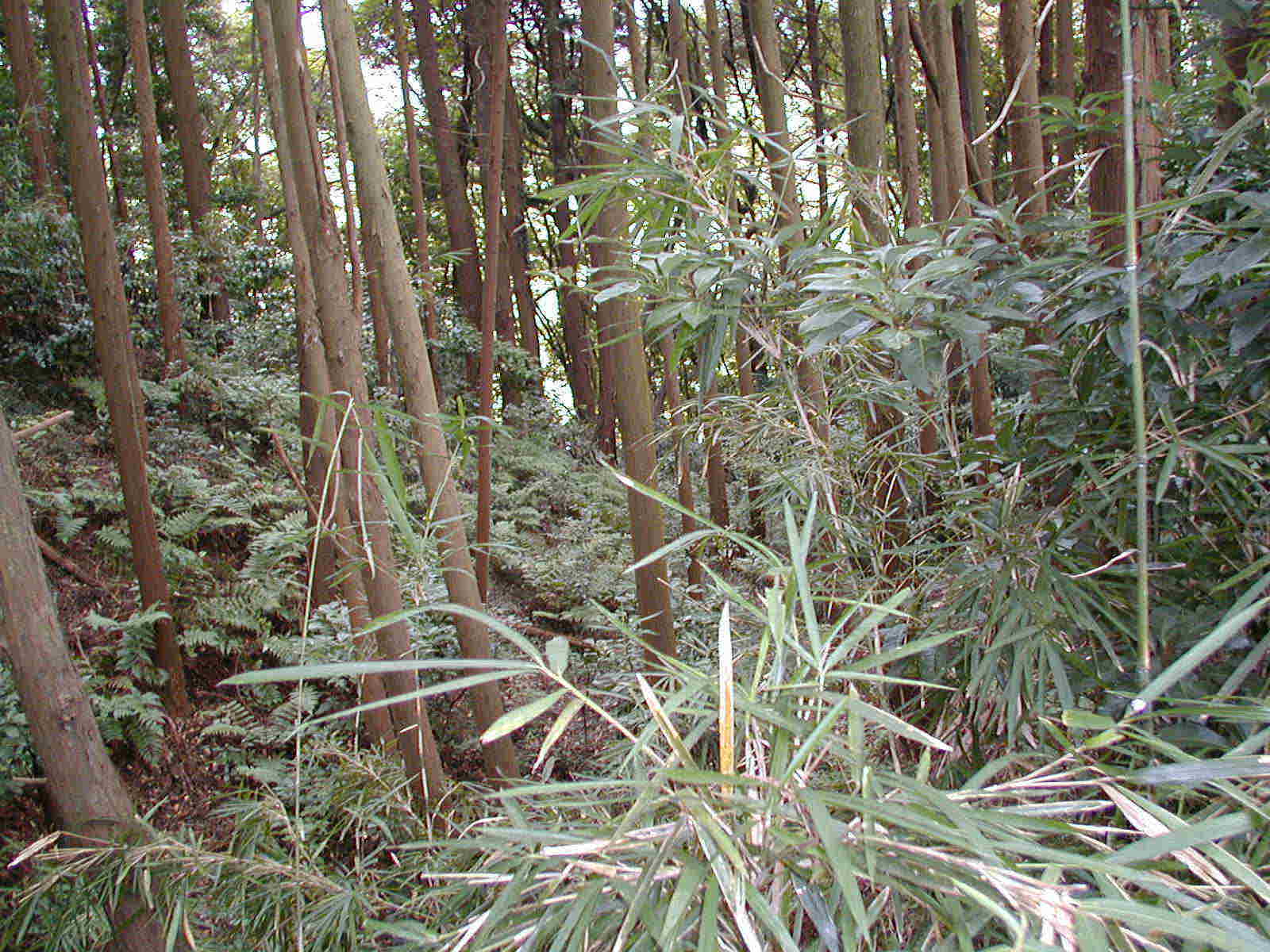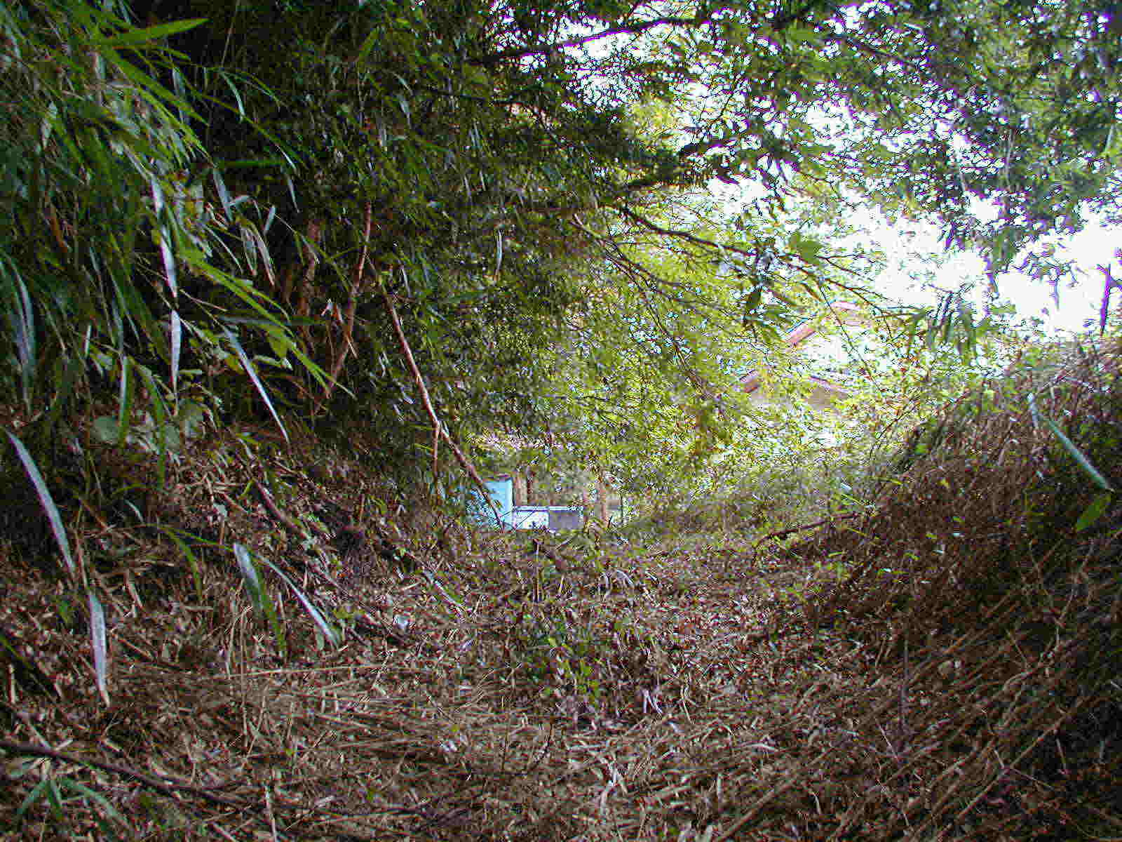 | 本郭と二の郭を分ける空堀(藪でうまく撮影できない。) | |