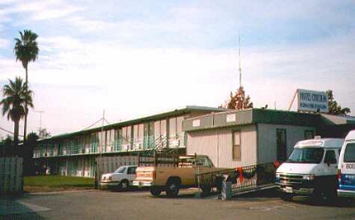 San Joseは別名「シリコン・バレー」と呼ばれる程、コンピュータ関係の会社/工場が多い 場所である。車窓からは見覚えのある企業の看板がバンバン見える。 ハイウェイを南下すること40分強、右手に空港らしき施設が見えてきた。これがSan Jose 空港であるならば、今回予約しているホテルはこのそばのハズである。 ハイウェイを降りて地図を見ながら迷うこと数分。爺さんが車を乗り入れたのは、薄汚れた プレハブ造りの、どう見ても「ホテル」とは呼べない場所であった。私の記憶が確かならば、これはいわゆるモーテルというやつではないだろうか? こんなところに、これから5日間も泊まらなければならないのか? 米国出張の第一歩、まずは大事なホテル予約で大きなつまずきを見せてしまった....。 San Jose Airport-Inn Hotel(愕然)