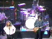 さて、日本公演初日のステージです。 某ニュース番組の天気予報のバックで、この日のThe Wanton Songが30秒程オンエアされまし た。日本公演唯一のPro-shot映像と思われます。広く出回っているAudience ShotのVideoは 遠めで手ブレがひどく、見てると自律神経に影響が出そうなしろものです。 Robertは青のベストに白のジーンズ、Jimmyはグリーンのサテンシャツに黒のパンツという 衣装です。ちなみにJimmyのいでたちは、東京公演中は全て同じでした。 私の所有する音源は某氏録音のUnderground Tapeで、多少遠目の音です。 Wantonを聴くと、今までのTourに比べてDrumsの手数が非常に多いことに気付きます。 この日のRobertは声が出ておらず、かなり苦しそうです。Bring It On HomeではVocalの入 りを間違え、更には1番と2番の歌詞を逆に歌っています。OFFをはさんで、記憶が飛んでし まったのでしょうか? "Oh, Good evening, Tokyo......Domo Arigato.... Well, it's indeed ...great honor ...for Jimmy and I to be ....playing again .... here in the famous old building..... It's great to be back here again." という有名な初日の挨拶(あえて原文で記載)の後、No Quarterを演奏してます。Jimmyの Soloは複雑で良い響きを奏でており、それに引きずられてRobertも頑張りを見せています。 しかし、反撃もここまで(笑)Gallows Poleでは高いキーの部分を巧みに下げて歌っており、 こうした「かわし」のアプローチが最後まで続きました。 SIBLYのIntroはEuroでよく聴かれた「低音のたくり」パターンで、あまり良くありません。 JimmyはVocalの後ろでTea For Oneのフレーズを入れています。Soloはエコーが深く、フレ ーズの方も「ぼやけた」感じで、これまた今ひとつです。 TSRTSではようやく観客がどっと沸きます。Jimmyの12弦は副弦の響きが弱く、鈍重な音色で す。ただし演奏の方は南米Tourに比べるとこなれた感じで、Soloもまあまあの出来です。 「この曲を書いたのは、えーと、何年前かな?(笑)...多分、1971年の曲です」 というMCに続き、Going to Californiaを演奏してます。更に、 「キミたち、彼が誰か別のヤツとここに来たのを知ってるかい? 彼は、まだそいつと連絡を取り合ってるんだぜ!(Well, he's still in touch.)」 とJimmyをサカナにBabe...に。(もちろん、別のヤツとはDavid Coverdaleのこと) Robertは出ない声をふり絞って頑張りを見せてくれますが、肝心のJimmyのSoloが外れ気味 で、ちょっとアレレな感じです。 WLLはネブワースVersionです。メドレーのWhite Rabitは、1st-LegのNew Orleans初日で 演奏されただけのレア曲です。 また、この日はYallahが復活! US 2nd-LegのLas Cruces公演以来です。 Four SticksはMichaelのDrumsが大迫力で、重戦車のような激しさです。 南米Tour終盤同様、エンディングはKashmirで、In The Eveningは演奏されませんでした。 Robertは随所で "Tokyo!!"を連呼しています。 "Thank you very much, Domo Arigato...."とRobertは挨拶し、メンバーは一度 ステージを去ります。 礼儀正しい(?)アンコールの拍手に応え、メンバーが再登場。 Robertが"So, Can you feel it?"と観客に問いかけ、JimmyはOut on The Tiles のIntroを掻き鳴らします。更にRobertは "So Tokyo, Talk to us....Talk! Talk!" と観客を執拗に煽り、Black Dogに突入しています。RobertのVocalは前半は悪くありません が、後半はやはりしんどそうでした。 Rock and Rollでは館内騒然となります。Robertは軽〜く歌っている感じですが、これも意外 に良しです。JimmyのSoloはワウをかけておらず、スッキリした好印象です。 いきなりの会場アナウンスという、日本らしい「デリカシーのない」エンディングで、初日の ステージが終了しました。 PLAY : 4.0 REC : 4.5 (1st Gen. from Remasterd Original Source) RARE : 1.0 [Boot CD: The 1st Day, The 1st Show at the Famous Old Buiding 他](No Tapes)/Babe, I'm Gonna Leave You/Bring It On Home/Heartbreaker/Thank You/Gallows Pole/Hurdy Gurdy solo/Nobody's Fault But Mine/Going To California/Since I've Been Loving You/Dancing Days/Yallah/Four Sticks/In The Evening/Kashmir//Tangerine/Whole Lotta Love-In The Light-Break On Through-Dazed and Confused//Rock And Roll