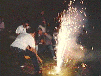 雄叫びと共に、袋一杯のロケット花火が子供のいるあたりに打ち込まれた。