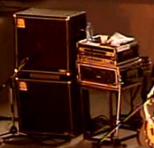 AMPEG社のベース・キャビネットを使用。右側のラックにはAMPEG社のアンプヘッド
