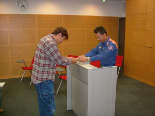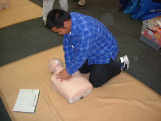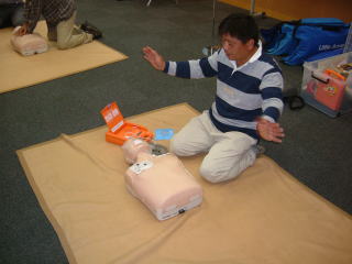 人工呼吸、胸骨圧迫、そして最近、あちらこちらで目にするAEDの使い方など、実技を中心に御指導いただきました。