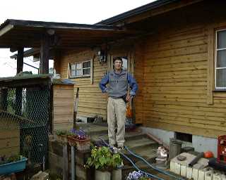 江原 栄 36歳 7人家族(祖母、父、母、妻、長女、次女) 私は花壇用草花栽培を中心とした農業を営んでいます。私は生まれながらの農家生活のなかで、農家の良さが見えなくなってしまった事に気づきました。そして、農家という空間の中で、いかに自分自身の生活をエンジョイできるかを人生の課題としています。 まず思いたった事は、夢だったログハウスを自分で建てることです。延べ3年間の建築期間を費やし、自分自身の手でなんとか作り上げました。(写真:現在の住居) これは、農家だからこそ土地があるお陰で建築が可能になったわけだと思います。 |