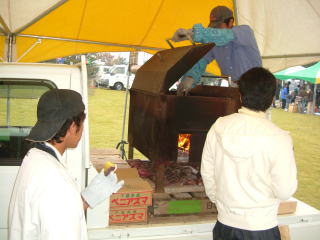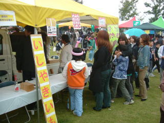 あいにくの天気で、人出は今ひとつでしたが、焼き芋屋は大繁盛。常にお客が列を作る勢い。