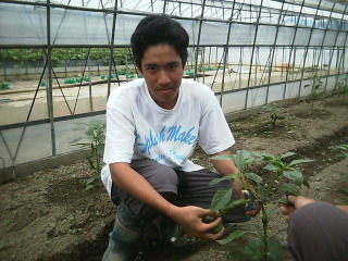当会議所、斉藤会員の(有)グリーンファームさいとうで、アセアンからの農業研修生、ジェトロ・ブリリアンテス君が実習に励んでいます。