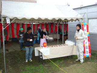 出来上がったもちは、あんこと辛味のセットで配布されます。ちなみにチャリティ募金を御協力いただいております。