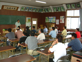 真剣に説明を聞きいる会員たち。
