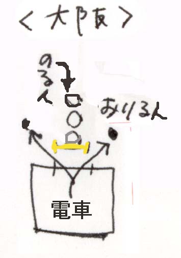 大阪では人が、電車の列に並びません。ドアが開いたと同時に