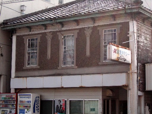 バス停の前には大きな歩道橋があった。教えられたとおりにそれを渡って、さきほどのつづきとおぼしき狭い通りへと入っていった。歩道橋の上から四方を見渡しても、これといったものはない。人通りのまばらな地方の町だ。しばらく歩くと橋が見えた。二十メートルほどの短さだが、橋脚から欄干まで分厚いコンクリートのアーチ橋だ。その手前の建物に目がとまった。近づいてみると壁の装飾が美しい。西洋風、あるいは大正風建築とでもいうのだろうか。傷み具合からすると近年のまがいものなどではない。さほど手入れされた様子はないが、いまも日常に使われているようだ。
