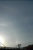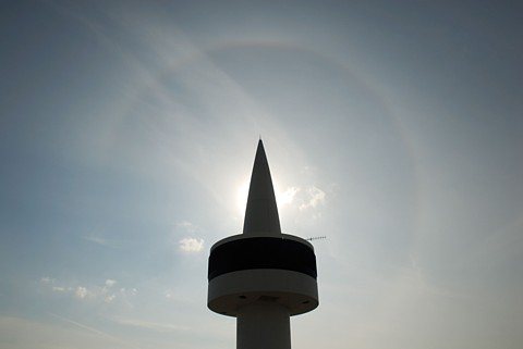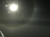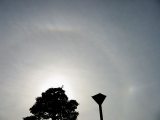 正午過ぎには、内暈の外側に左右の幻日が明るく見えたそうです (写真左は内暈と左の幻日)。